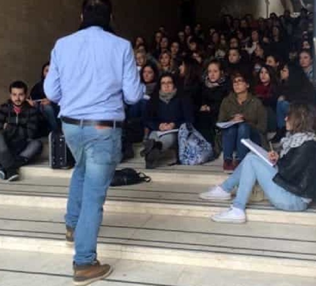 Lezioni en plein air e senza nemmeno la filosofica scusante di essere allievi di Aristotile: i nuovi peripatetici sono solo studenti universitari dell’Ud’A di Chieti, rimasti senz’aula per un disguido.