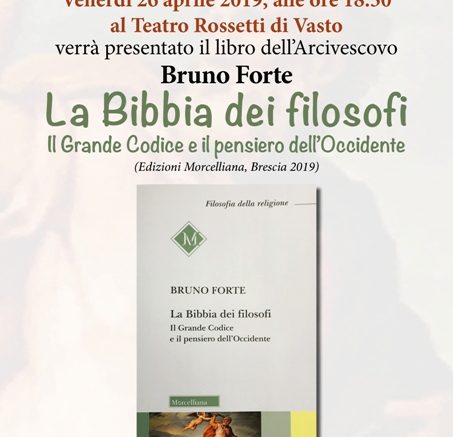 Il volume si chiama “La Bibbia dei filosofi. Il Grande Codice e il pensiero dell’Occidente” ed è in uscita per la casa editrice Bollati Boringhieri. A dialogare con Monsignor Forte saranno il filosofo Vincenzo Vitiello e il teologo Monsignor Michele Giulio Masciarelli.