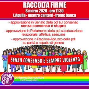 Le organizzatrici e gli organizzatori sottolineano che la lotta per il consenso è inseparabile da quella per i diritti economici e sociali: senza indipendenza economica e senza leggi che garantiscano reale parità di genere, il consenso rimane un principio formale privo di sostanza.