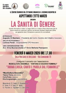 Ad Avezzano il Centro Giuridico del Cittadino organizza un incontro sulla sanità di genere, seguito dal concerto Anima Lirica: Canto e Parola al Femminile, curato da Musicultura Ensemble. Appuntamento venerdì 6 marzo alle ore 17.00 nella sede della Pro Loco di Avezzano, via Corradini 75.