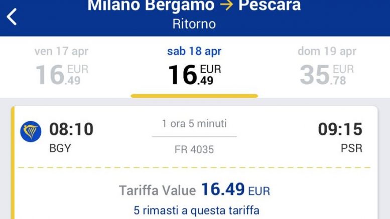 “Da venerdì scorso sono tornati prenotabili i voli Pescara-Bergamo e Pescara – Cracovia anche dopo il 28 marzo 2020. Situazione sbloccata due giorni dopo l’incontro risolutivo avuto personalmente a Dublino, la settimana scorsa, con il Director of Route Development della Ryanair Niall O’Connor”.