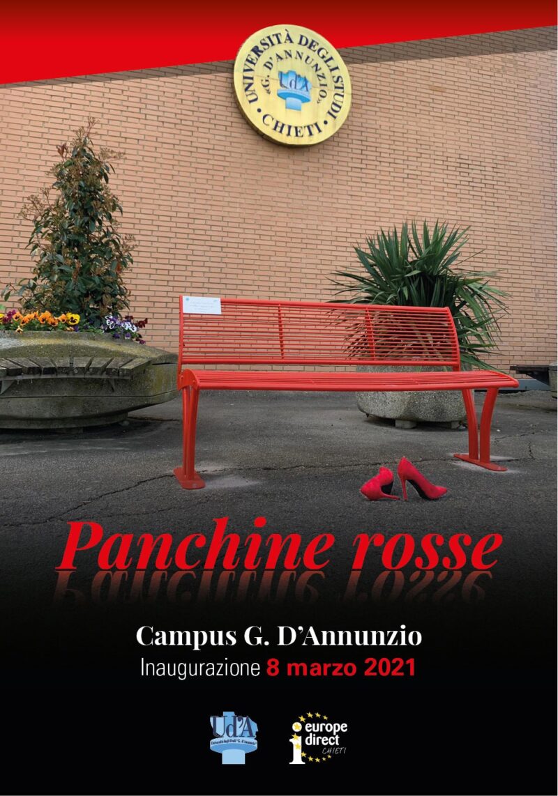 L’iniziativa a sostegno della lotta contro la violenza verso le Donne è stata lanciata e realizzata dallo sportello “Europe Direct” dell’Ateneo, guidato dalla delegata del Rettore, la professoressa Fausta Guarriello, e coordinato dalla dottoressa Annalisa Michetti. La proposta ha avuto anche il pieno appoggio del CUG (Comitato Unico di Garanzia) dell’Università “G. d’Annunzio”. Le panchine rosse saranno sistemate in punti qualificanti. Nel Campus di Chieti sono: l’ingresso del Rettorato, il piazzale di Lettere e l’ingresso della piattaforma medico-scientifica. Altre due saranno collocate agli ingressi del Campus di viale Pindaro a Pescara. Su ogni panchina è stata affissa una piccola targa con il commento di Kofi Annan, ex-Segretario Generale delle Nazioni Unite “La violenza contro le donne è una delle più vergognose violazioni dei diritti umani”. Ad inaugurare le panchine rosse, simbolicamente la prima e più importante, quella che si trova sotto lo stemma dell’Ateneo all’ingresso del Rettorato, sarà la professoressa Augusta Consorti, Pro Rettrice della “d’Annunzio”. In occasione della manifestazione saranno lanciati sui canali social dell’Ateneo (www.unich.it) messaggi dedicati alla cerimonia, inviati, tra gli altri, dalla dottoressa Claudia De Stefanis, Capo del Team Comunicazione e Reti d’Informazione della Rappresentanza in Italia della Commissione Europea.