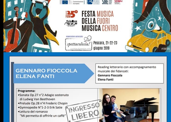Il 21 giugno del 1982, con l’iniziativa ideata dal Ministero della Cultura francese, in tutta la Francia, musicisti dilettanti e professionisti invadono strade, cortili, piazze, giardini, stazioni, musei. Non contenta solamente di rendere la pratica musicale visibile, la Festa della Musica è diventata un autentico fenomeno sociale. Dal 1985, Anno Europeo della Musica, la Festa della Musica si svolge in Europa e nel mondo. Dal 1995, Barcellona, Berlino, Bruxelles, Budapest, Napoli, Parigi, Praga, Roma, Senigallia sono le città fondatrici dell’Associazione Europea Festa della musica. Nel 2016 in Italia la svolta, grazie al lavoro fatto dalla AIPFM (Associazione Italiana per la Promozione della Festa della Musica) e dalla presenza istituzionale del Ministero dei Beni Culturali e turistici, hanno aderito più di 280 città, dando vita a una rete distribuita su tutto il territorio nazionale. Tantissimi concerti di musica dal vivo si svolgono ogni anno, il 21 giugno, in tutte le città, principalmente all’aria aperta, con la partecipazione di musicisti di ogni livello e di ogni genere. Concerti gratuiti, valore del gesto musicale, spontaneità, disponibilità, curiosità, tutte le musiche appartengono alla Festa. Nel 2018 le città partecipanti all’evento sono state circa 700. Nel 2019 anche Pescara è entrata a far parte del circuito internazionale, per mezzo dell’associazione di promozione sociale e culturale “Spettacolosìa!” di Pescara che è stata incaricata dell’organizzazione. L’evento si terrà nei giorni 21 giugno presso il centro di aggregazione giovanile “Lo Spaz!” di Pescara