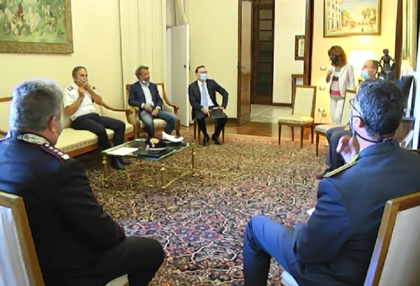 Alla luce delle nuove disposizioni imposte dal Governo per contrastare i contagi da Coronavirus, il Prefetto di Pescara, Giancarlo Di Vincenzo, ha presieduto stamani il Comitato provinciale per l’ordine e la sicurezza pubblica. Al termine del vertice al quale hanno preso parte i rappresentanti delle Forze dell’ordine ed alcuni amministratori locali, è stato deciso di rafforzare i servizi di vigilanza. I controlli saranno più incisivi soprattutto nella zona della movida in prossimità di Piazza Michele Muzii, via Cesare Battisti e sul lungomare. Come è noto ormai il provvedimento impone l’uso delle mascherine dalle 18 alle 6 del mattino. Per i trasgressori sono previste multe salate, da 400 ad un massimo di 1000 euro. Se il pagamento avviene entro 5 giorni l’ importo da pagare è di 280 euro. Le Forze di Polizia, ha sottolineato il Questore di Pescara, Francesco Misiti, opereranno in sinergia. E’ previsto un gran dispiegamento di uomini della Polizia di Stato, dei Carabinieri, della Guardia di Finanza della Polizia Municipale e della Guardia Costiera. Sono previsti infatti pattugliamenti e controlli nelle aree di maggior concentrazione soprattutto di giovani. Il Prefetto di Pescara ha rivolto infine un messaggio ai giovani invitandoli ad essere responsabili e prudenti. E’ stato ricordato infine che nelle piazze la mascherina va portata a prescindere dal distanziamento sociale.