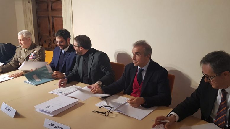 L’intesa è stata firmata dal sindaco dell’Aquila, Pierluigi Biondi, dal generale di divisione Massimo Scala, dal provveditore alle Opere pubbliche Lazio-Abruzzo-Sardegna,Vittorio Rapisarda Federico, dal presidente vicario della Regione Abruzzo, Giovanni Lolli (non presente all’incontro ma rappresentato dal consigliere regionale Pierpaolo Pietrucci), e da Marcello Bosica, vice direttore della Direzione Regionale Abruzzo e Molise dell’agenzia del Demanio. All’incontro è intervenuto anche il sottosegretario alla Difesa Angelo Tofalo.