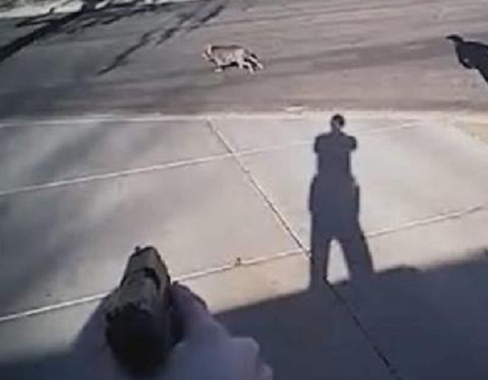 Un pitbull gira libero per le strade e aggredisce un cagnolino, ferendo il proprietario e un altro passante; gli agenti di Polizia municipale, dopo aver provato in ogni modo a fermarlo, sono costretti a sparargli e ad abbatterlo.