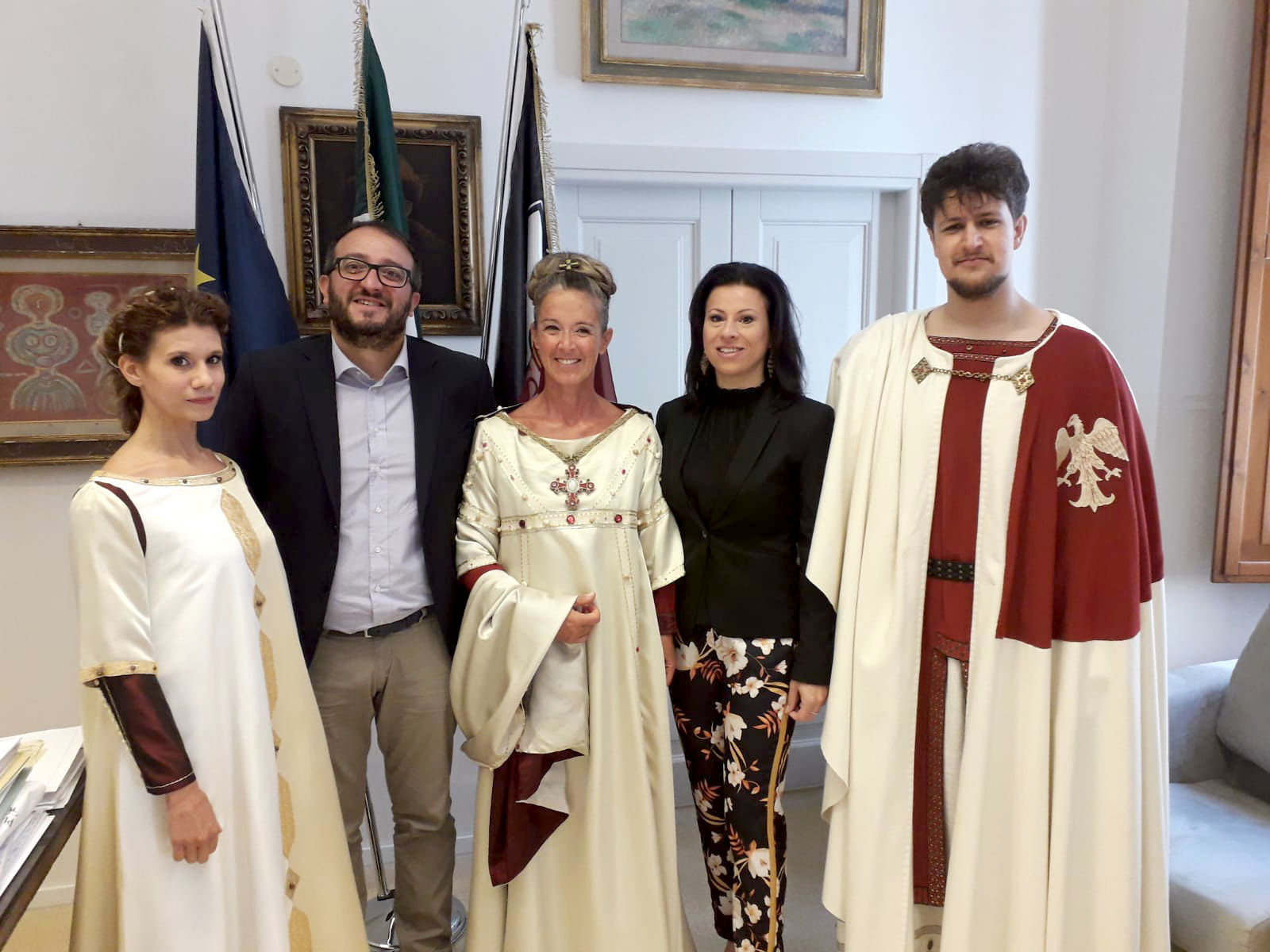 Sono stati presentati stamani in Comune i figuranti principali del Corteo Storico della Bolla del Perdono, momento culminante della Perdonanza Celestiniana, che si svolgerà nel pomeriggio del 28 agosto e al termine del quale sarà aperta la Porta Santa della Basilica di Santa Maria di Collemaggio, per l’inizio del Giubileo più antico della storia, che durerà un giorno.