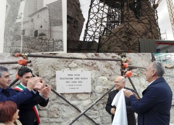 Fra un anno la Torre Medicea – da poco commissariata nell’ambito di un’inchiesta su presunte mazzette negli appalti della ricostruzione portata avanti dal Nucleo investigativo della Procura dell’Aquila – potrebbe finalmente tornare al suo antico splendore. I lavori, per un importo di oltre un milione di euro, vennero annunciati nel maggio 2017 dal già sottosegretario della Presidenza del Consiglio dei ministri Gianni Letta e il vice presidente del Csm Giovanni Legnini.