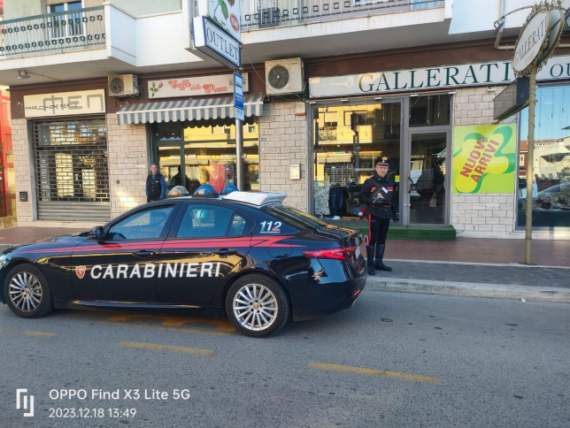 Nella notte, attraverso un’azione sinergica che ha visto impegnate le pattuglie della Radiomobile di Montesilvano e della locale stazione, nonché quella della Radiomobile di Pescara, a seguito di una segnalazione pervenuta da una cittadina, sono stati bloccati due giovani pregiudicati del luogo che avevano ancora parte del bottino. L’obiettivo questa volta era stato un negozio di abbigliamento su Corso Umberto I, già visitato nei giorni scorsi. Anche in questo caso, i due giovani avevano sfondato la vetrina, con l’obiettivo di impossessarsi dell’incasso, ma grazie al tempestivo intervento dei militari non sono