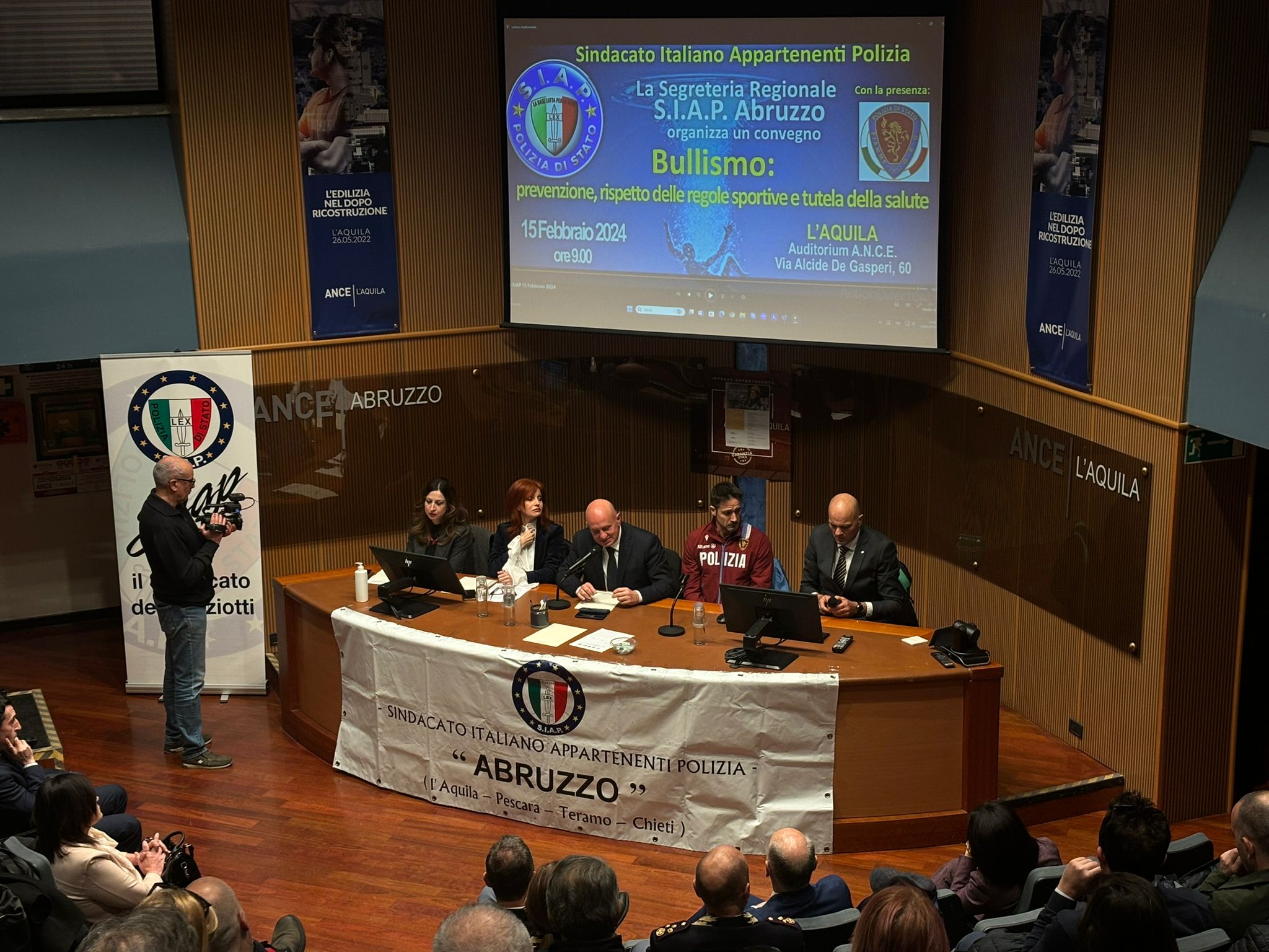 La segreteria generale regionale Abruzzo del Siap (sindacato italiano appartenenti Polizia) il più grande sindacato di base rappresentativo del personale della Polizia di Stato, terza forza sindacale del comparto sicurezza e difesa, ha organizzato all’Aquila presso l’Auditorium dell’Ance un convegno dal titolo “Bullismo: prevenzione, rispetto delle regole sportive e tutela della salute”.