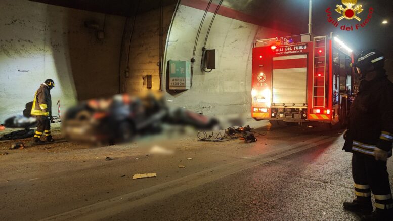 Un uomo di 23 anni e una donna di 33 sono morti in un incidente avvenuto all’interno della galleria i Pianacci nel territorio di Montesilvano