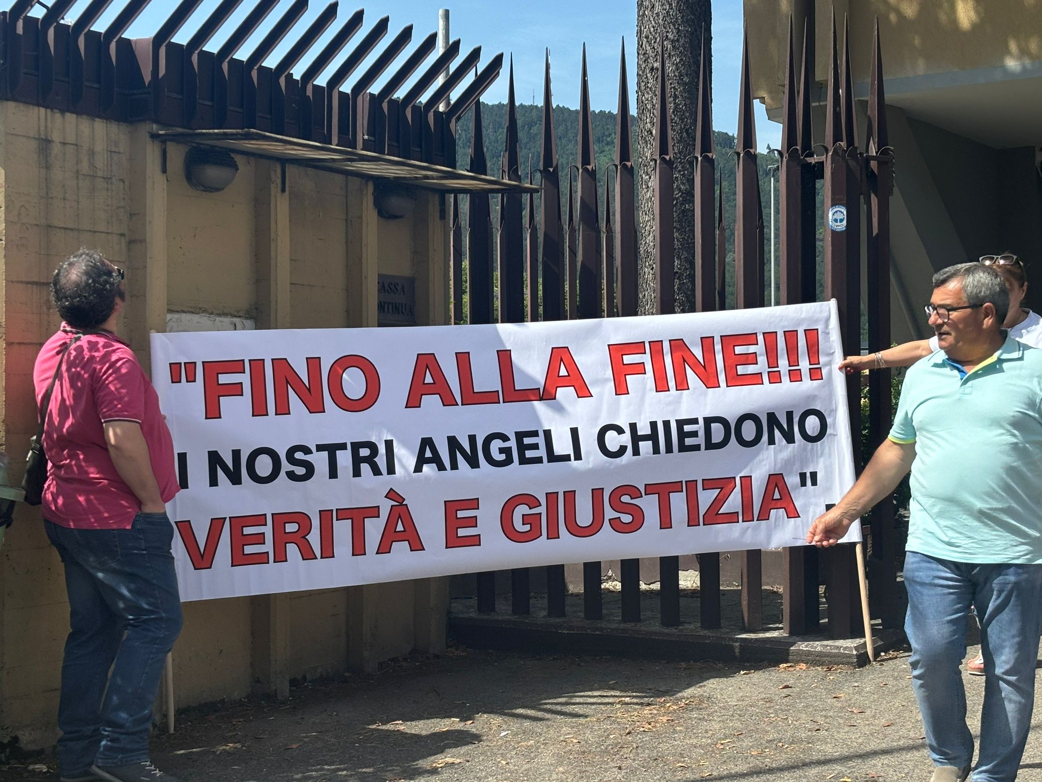 Sit-in del comitato dei familiari delle vittime di Rigopiano al Tribunale dell’Aquila per chiedere alla Procura di procedere con il ricorso in Cassazione