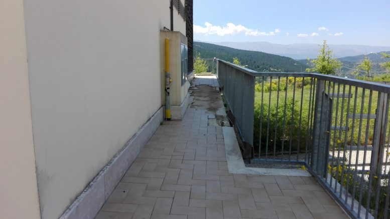 Lo stato di abbandono del progetto Case di Assergi rende la vita sempre più difficile ai suoi inquilini, per lo più anziani e disabili che devono fare slalom tra mattonelle divelte, marciapiedi impraticabili, garage con perdite di acqua, parti comuni pulite – lamentano gli inquilini – soltanto una volta al mese.