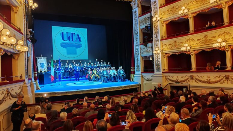 La solenne cerimonia si è svolta nel pomeriggio di ieri, lunedì 3 giugno 2024. Per la prima volta nella storia di questa onorificenza, istituita nel 1988, la cerimonia è stata ospitata fuori dal campus universitario e non più nell’ambito della cerimonia di inaugurazione dell’anno accademico. La scelta della prestigiosa sede del Teatro Marrucino si è resa possibile anche grazie alla disponibilità del Comune di Chieti e dell’istituzione della deputazione teatrale Teatro Marrucino.