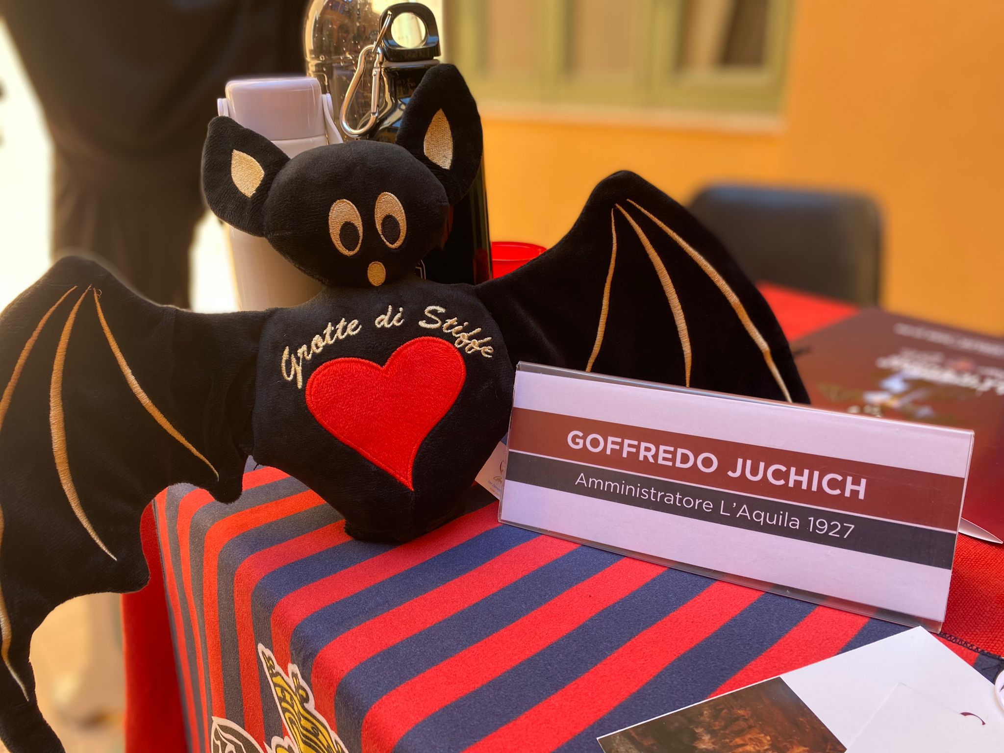 Il pipistrello ha il cuore rossoblù: suggellato il patto tra la mascotte delle Grotte di Stiffe e L’Aquila 1927 che interseca la bellezza del sito naturalistico con la passione calcistica della squadra del capoluogo