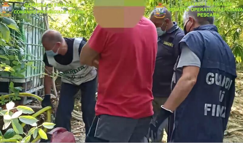 La Guardia di Finanza di Teramo ha arrestato in flagranza un albanese. Sequestrate 180 piante di marijuana. Una volta immesse sul mercato avrebbero fruttato 200 mila euro.