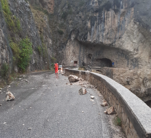 Questa mattina, sulla strada 479 Sannite, a pochi metri dalla galleria di Anversa degli Abruzzi, un masso di grosse dimensioni, largo circa due metri, si è staccato dalla parete rocciosa, finendo sulla carreggiata stradale