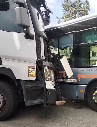 Solo tanta paura e disagi per il traffico, stamane a Giulianova, per un incidente che ha coinvolto un tir e un autobus della Tua. Forse a causa di un malore, il conducente del mezzo pesante (un 72enne) ha invaso la corsia opposta, finendo contro un bus della Tua, fortunatamente senza conseguenze importanti per i passeggeri dell’autobus. Sul posto sono intervenuti carabinieri, vigili del fuoco e personale del 118. I Vigili del Fuoco del Distaccamento di Roseto degli Abruzzi, ricostruendo l’accaduto, fanno sapere che una squadra è intervenuta sulla SS16 Adriatica, in prossimità dell’incrocio con via Montello.