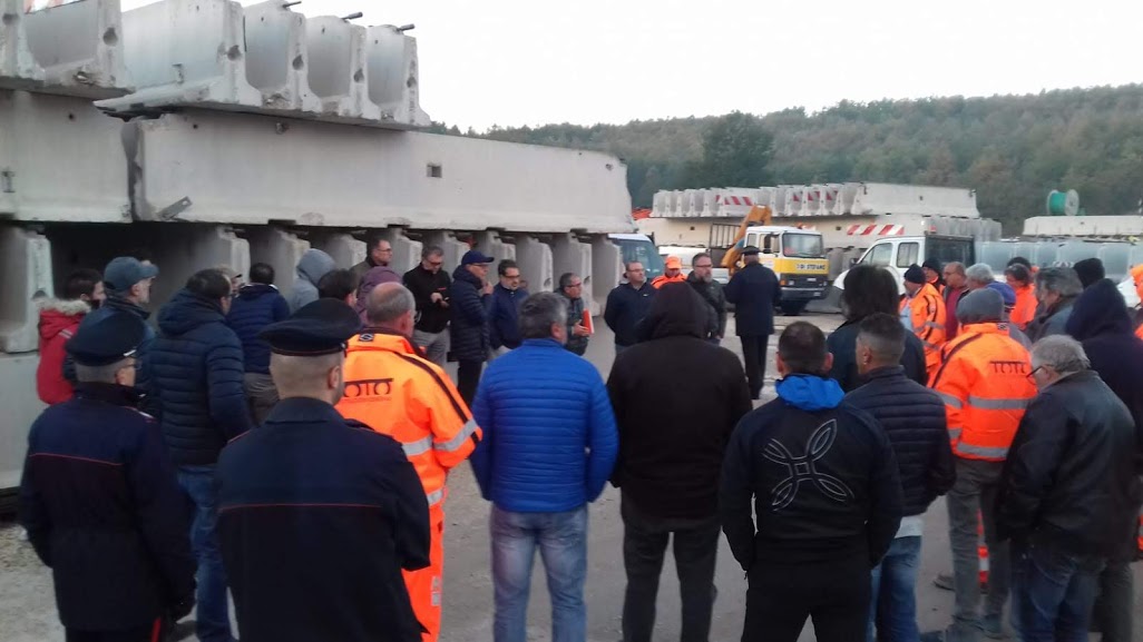 Avrebbe dovuto essere una protesta, rientrata in extremis e tramutata in assemblea sindacale dopo la comunicazione inviata ieri sera dal responsabile del personale della Toto costruzioni Giacomo Di Giulio. Un’email in cui viene garantito che gli stipendi di agosto e settembre saranno pagati, così come l’anticipo di cassa integrazione per gli operai che al cessare dei lavori della prima fase di messa in sicurezza antisismica sui viadotti e piloni dell’A24 e A25 hanno lasciato i cantieri. Per i tre sindacati la battaglia deve continuare fino a quando il problema non sarà risolto a monte – ossia con la pubblicazione da parte del Mit dei decreti attuativi all’interno del decreto per Genova – per poter dare continuità nei prossimi anni ai lavoratori di Toto costruzioni.