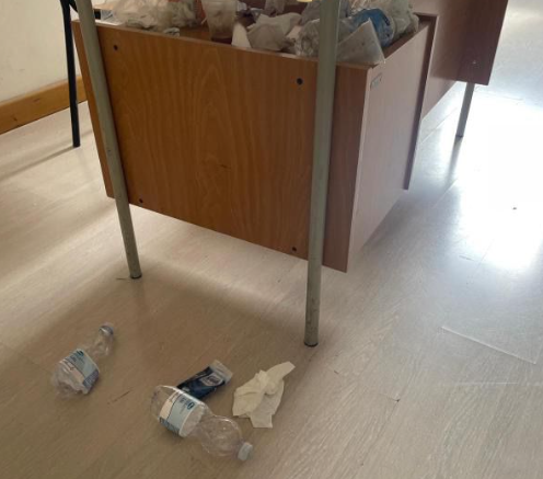 Mancano sedie, banchi, è sporco ovunque, le stanze hanno un intonaco che cade a pezzi, le lampade sono appese con fili provvisori con il rischio che vadano a finire sulla testa dei ragazzi (questa mattina in una classe sembra che una lampada si sia staccata).