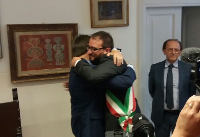 Battute, abbracci calorosi, una stretta di mano leale dietro la scrivania che l’ex sindaco dell’Aquila Massimo Cialente ha occupato negli ultimi dieci anni, prima a palazzo Margherita e, dopo il sisma, a Villa Gioia. Oggi a Palazzo Fibbioni, sede temporanea in attesa che il municipio di piazza palazzo torni fruibile – nel crocevia dei Quattro Cantoni cuore della vita sociale aquilana. Scrivania che sarà occupata da questa mattina dal neosindaco Pierluigi Biondi. Una cerimonia alta, l’hanno definita i due sindaci, quello uscente e quello entrante, in cui è stata ribadita la volontà di collaborare per un obiettivo comune: il futuro della città, che ha davanti a sé non solo ancora la sfida della ricostruzione, ma soprattutto quella della rinascita sociale ed economica. “Cercherò la collaborazione di chi mi ha preceduto – ha detto Biondi – perché spesso i nemici sono stati non dentro le mura, ma fuori”.