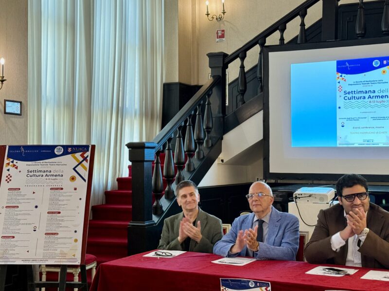 Dall’8 al 13 luglio, il Teatro Marrucino di Chieti ospiterà la Settimana della Cultura Armena, una rassegna di eventi, organizzata per il tramite della Scuola di Recitazione e con il patrocinio dell’Ambasciata della Repubblica d’Armenia, che celebra la tradizione, la storia e l’identità del popolo armeno attraverso un ricco calendario di eventi artistici, musicali e teatrali. Si tratta di un’occasione unica per esplorare la ricchezza culturale dell’Armenia, grazie alla preziosa collaborazione con l’Università degli Studi “G. d’Annunzio” di Chieti-Pescara e con la National University of Architecture and Construction of Armenia (NUACA), che rende possibile la partecipazione di una delegazione di dieci studenti e cinque docenti provenienti da Yerevan che prenderanno parte attivamente alla rassegna proponendo numerose attività.
