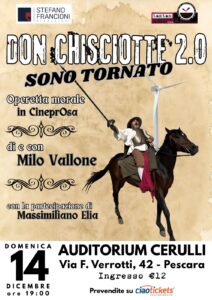 Un Don Chisciotte 2.0 quello prodotto da Stefano Francioni e Tam Tam Communications, in scena all’Auditorium Cerulli di Pescara domenica 14 dicembre alle ore 19