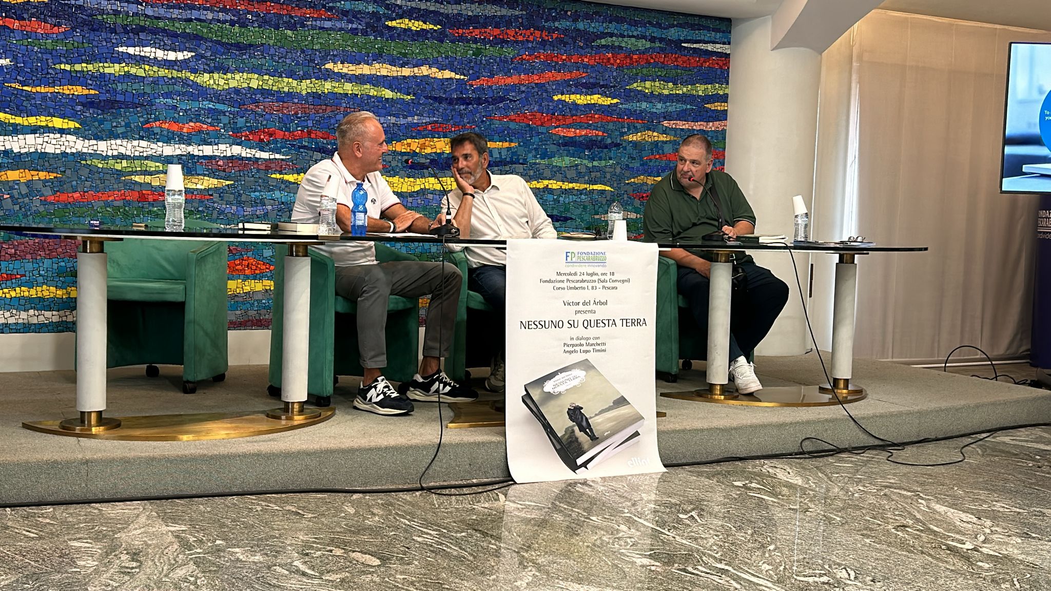Lo scrittore catalano ha incontrato i lettori nella sala della Fondazione Pescarabruzzo. L’appuntamento letterario è stato condotto da Pierpaolo Marchetti, giornalista abruzzese e traduttore dallo spagnolo dei libri di Del Àrbol, e Angelo Lupo Timini, scrittore pescarese.