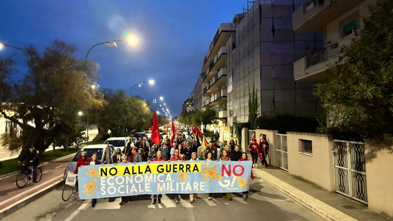 A Pescara è partito intorno alle 18.00 il corteo No G7 per la pace e il disarmo. Un lungo serpentone ha attraversato il lungomare e altre strade cittadine per poi confluire in piazza Salotto per gli interventi