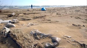 “Sul tratto di arenile di Pescara scelto per la pulizia si trovano in abbondanza spezzoni e parti intere di reti tubolari in polipropilene per la coltivazione dei mitili – dette reste – spiaggiate dalle mareggiate. Provengono dai campi di allevamento presenti al largo lungo tutta l’estensione della costa abruzzese, come d’altronde in altri tratti dell’Adriatico. Gli allevatori del mare salpano le reste immerse entro le quali crescono i mitili, le tagliano per estrarre i molluschi e le gettano in acqua anziché issarle a bordo e conferirle a terra per lo smaltimento. Tra la sabbia si trovano molti altri oggetti di plastica che il mare restituisce, ma anche i giochi dei bambini (secchielli, formine, palette, gonfiabili, ecc.) abbandonati sulla spiaggia a fine stagione balneare. E i filamenti di rafia sintetica che il vento stacca dagli ombrelloni di tipo hawaiano. Questi rifiuti sono i più insidiosi perché si spezzettano e degradano velocemente. Purtroppo sarà molto difficile raccoglierli”.
