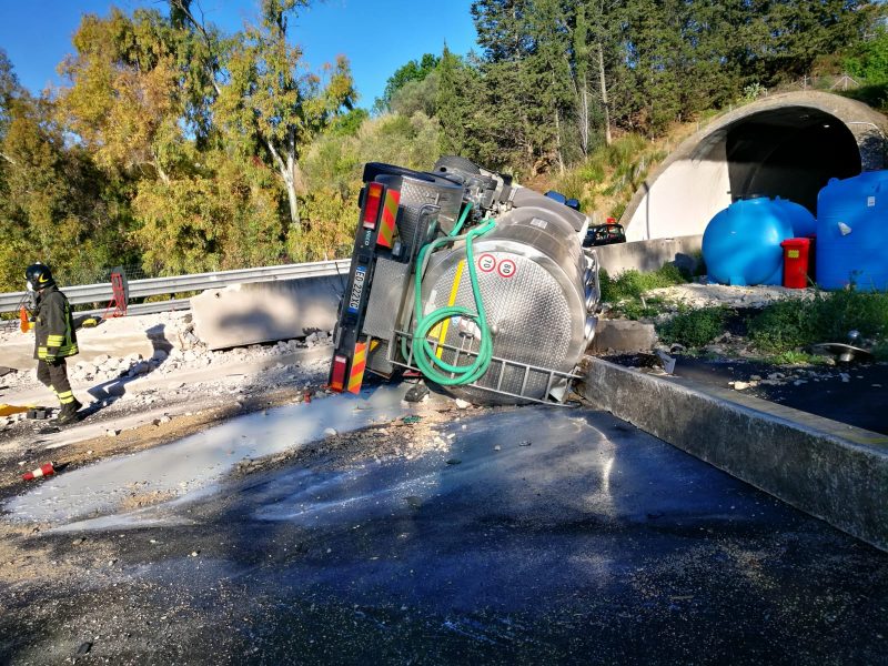 Stamattina 4 maggio, intorno alle 7:40, i vigili del fuoco del distaccamento di Nereto sono intervenuti per un incidente stradale avvenuto sull’Autostrada A14, carreggiata Nord, al Km. 313, nei pressi della galleria Colle Marzio nel comune di Martinsicuro. Nell’incidente è rimasto coinvolto un camion cisterna per il trasporto del latte. L’incidente è avvenuto in corrispondenza di una deviazione del traffico, dovuta ai lavori in corso sulla galleria in direzione nord. Il mezzo pesante, nel fare il cambio di carreggiata, ha centrato la barriera jersey ribaltandosi su un fianco e perdendo il carico con il latte che si è sversato sull’asfalto. L’autista è uscito illeso dall’incidente, riportando solo leggere escoriazioni ad una mano.