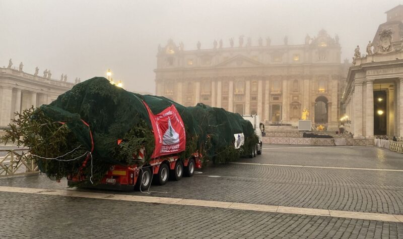 L’abete bianco, di 26 metri, donato dalla Regione Abruzzo è arrivato in Piazza San Pietro. Sabato 3 dicembre l’inaugurazione