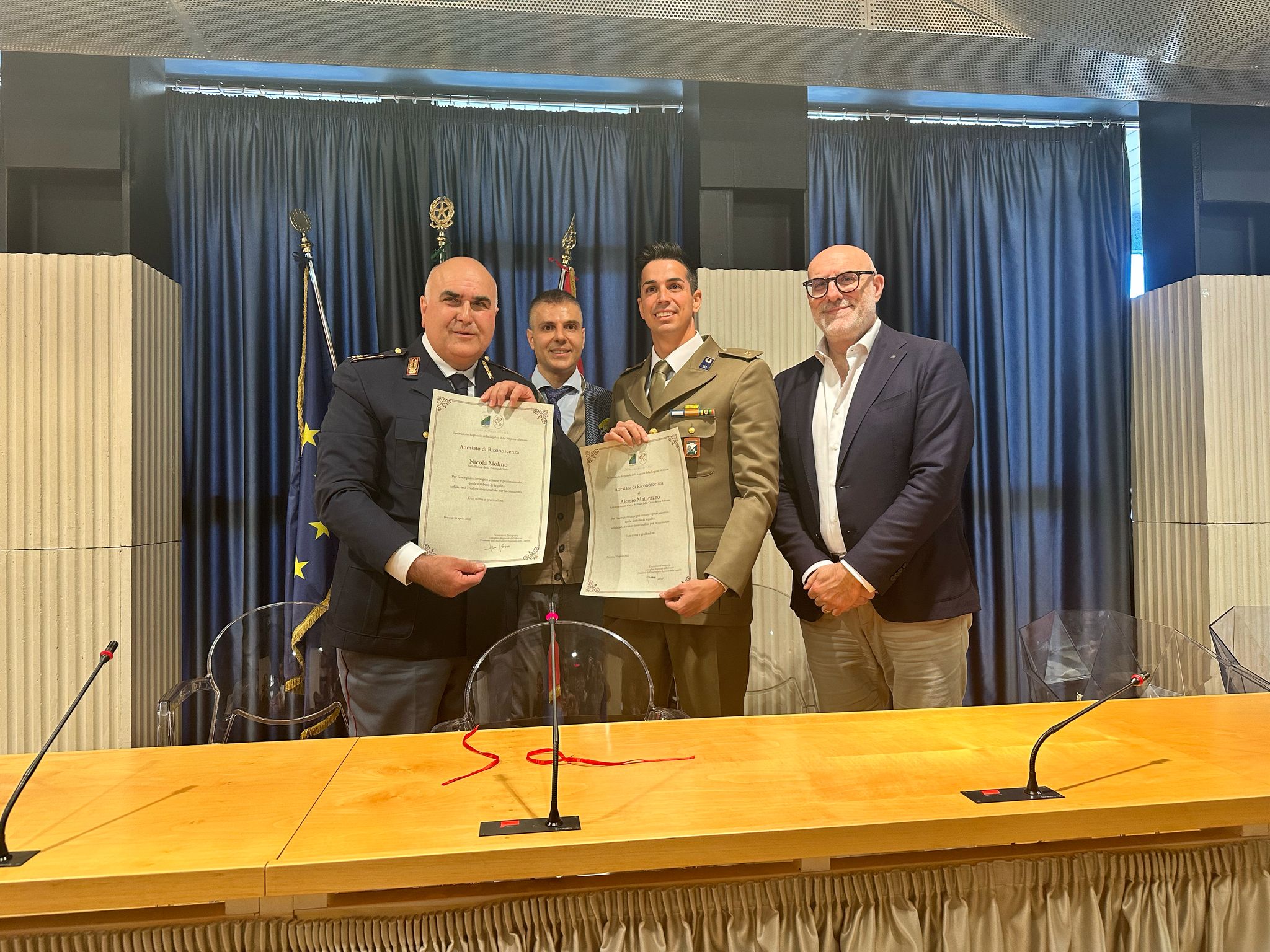 Alla presenza, anche del Difensore Civico della Regione Umberto Di Primio e del Questore di Pescara Carlo Solimene, i premi sono andati al vice sovrintendente della Polizia di Stato Nicola Molino, per avere, oltre a numerosi altri interventi di polizia sul territorio, sventato il suicidio di un giovane ragazzo. Pergamena anche al Sottotenente Commissario del Corpo Militare della Croce Rossa Alessio Matarazzo per aver organizzato un cordone umanitario dall’Ucraina in Italia, che ha consentito a oltre 50 atleti di venire in Abruzzo per allenarsi in serenità e lontano dagli scenari bellici.