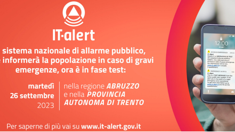 Non è uno scherzo né una nuova modalità di truffa: martedì 26 settembre 2023 alle 12:00 i telefoni cellulari in Abruzzo e nella Provincia autonoma di Trento saranno raggiunti da un messaggio di test IT-alert, il nuovo sistema di allarme pubblico nazionale. Tutti i dispositivi agganciati a celle di telefonia mobile nella nostra regione suoneranno contemporaneamente, emettendo un suono distintivo diverso da quello delle notifiche a cui siamo abituati. Chi riceve il messaggio di test non ha nulla da temere, e non dovrà fare nulla tranne leggere il messaggio. L’invito per tutti coloro che abbiano ricevuto correttamente il messaggio è ad andare sul sito it-alert.it e rispondere al questionario: le risposte degli utenti, infatti, consentiranno di migliorare lo strumento. Nei prossimi mesi saranno effettuati ulteriori test nelle altre regioni italiane.
