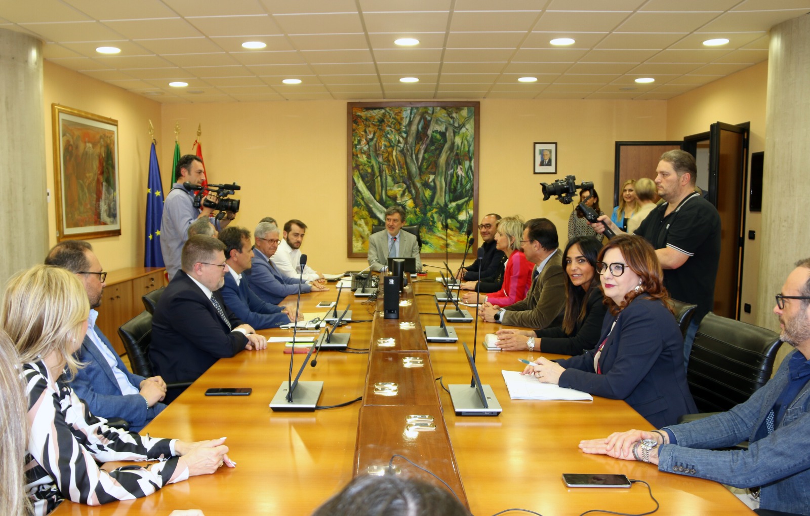 La nuova giunta regionale si è riunita a Palazzo Silone, presenti anche i direttori dei vari settori della Regione Abruzzo.