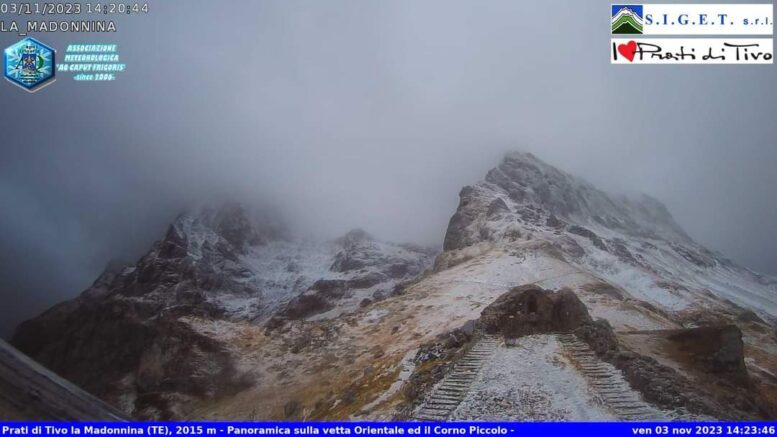 Non è esattamente la prima neve della stagione, a ottobre avevamo già segnalato una lieve spolverata sul Corno Grande, ma quella caduta oggi, dopo il caldo dell’ultimo periodo, sembra davvero annunciare l’arrivo (tardivo) dell’autunno e un po’ anche quello dell’inverno. Sulla A24 si sono riscontrati alcuni rallentamenti al traffico dovuti alla comparsa del manto bianco. Anche le temperature virano verso valori invernali: minima a 7 gradi. Intanto diversi danni a causa del maltempo di questa notte sono stati registrati in gran parte della Marsica, con alberi e pali elettrici a terra. A Venere frazione del Comune di Pescina è volato via il tetto di un’abitazione; danni sono stati registrati nel Comune di Ortucchio, dove si sono abbattuti diversi pini secolari.