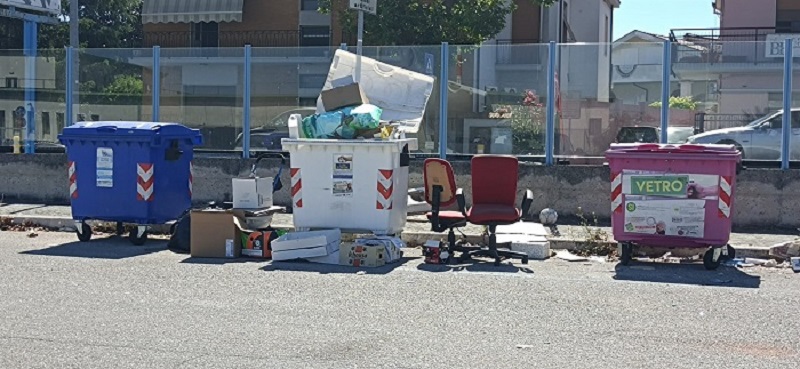C’è di tutto nei cassonetti nel parcheggio dell’aeroporto d’Abruzzo: cartoni, rifiuti ingombranti, televisioni, sedie, persino wc con tanto di giornali a seguito. Si presentava così, stamattina, l’area esterna dell’aeroporto. Non solo lo scalo abruzzese, andando in giro per Pescara si notano cassonetti pieni, rifiuti abbandonati in strada, col malcontento dei cittadini i quali lamentano una minore frequenza di interventi da parte dalla società che gestisce il servizio, Ambiente SpA, e anche una carenza di mezzi.
