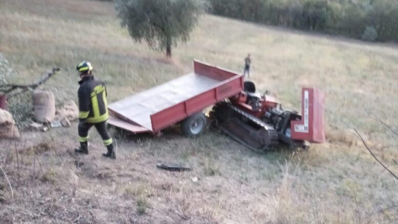 Nell’incidente è rimasto coinvolto un trattore cingolato con rimorchio, utilizzato dalla vittima, l’agricoltore di 74 anni Domenico Saputelli, impegnato nella raccolta delle olive in un terreno in pendenza. Per cause in corso di accertamento da parte della Carabinieri della Stazione di Villa Vomano, intervenuti sul posto, il trattore si è ribaltato e dopo un giro completo si è ripoggiato sui cingoli. Quando il mezzo si è rovesciato sul pendio l’anziano è stato sbalzato dal posto di guida ed è rimasto schiacciato sotto un cingolo. I vigili del fuoco hanno utilizzato i cuscini pneumatici sollevatori in dotazione e un altro trattore fatto arrivare sul posto, per estrarre l’uomo da sotto il mezzo agricolo ed hanno fornito assistenza al personale sanitario del 118 di Teramo che non ha potuto far altro che costatarne la morte. Il corpo del deceduto è stato recuperato una volta ottenuta l’autorizzazione del magistrato di turno.