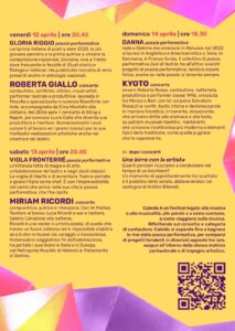 Grande partecipazione di pubblico ieri sera al Florian Espace di Pescara per la prima serata nell’ambito del Caleido Festival che ha visto protagoniste Roberta Giallo in concerto e Gloria Riggio con la poesia performativa. L’evento culturale, giunto alla terza edizione, si protrarrà sino a domani domenica 14 aprile