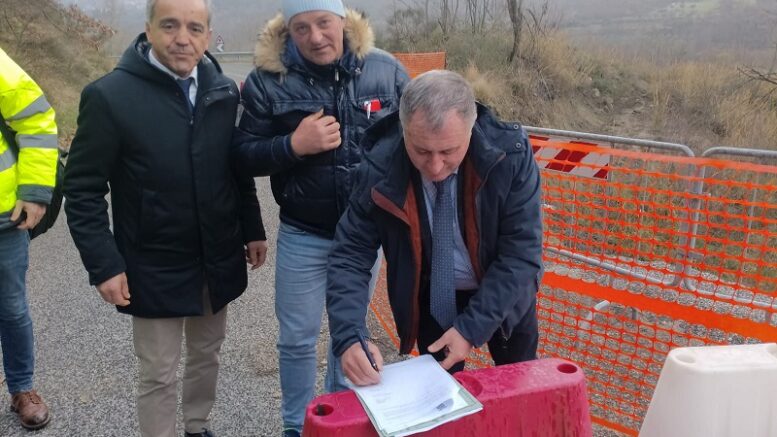 “Un’iniziativa che risolve criticità del territorio e riconsegna un’arteria stradale importante alle comunità dei due comuni interessati e che nella prossima primavera sarà attraversata dal Giro D’italia nel corso della tappa Avezzano – Napoli” (nell’intervista) dichiara il Presidente della Provincia dell’Aquila Angelo Caruso recatosi di persona sul cantiere per attivare le procedure di consegna dei lavori .