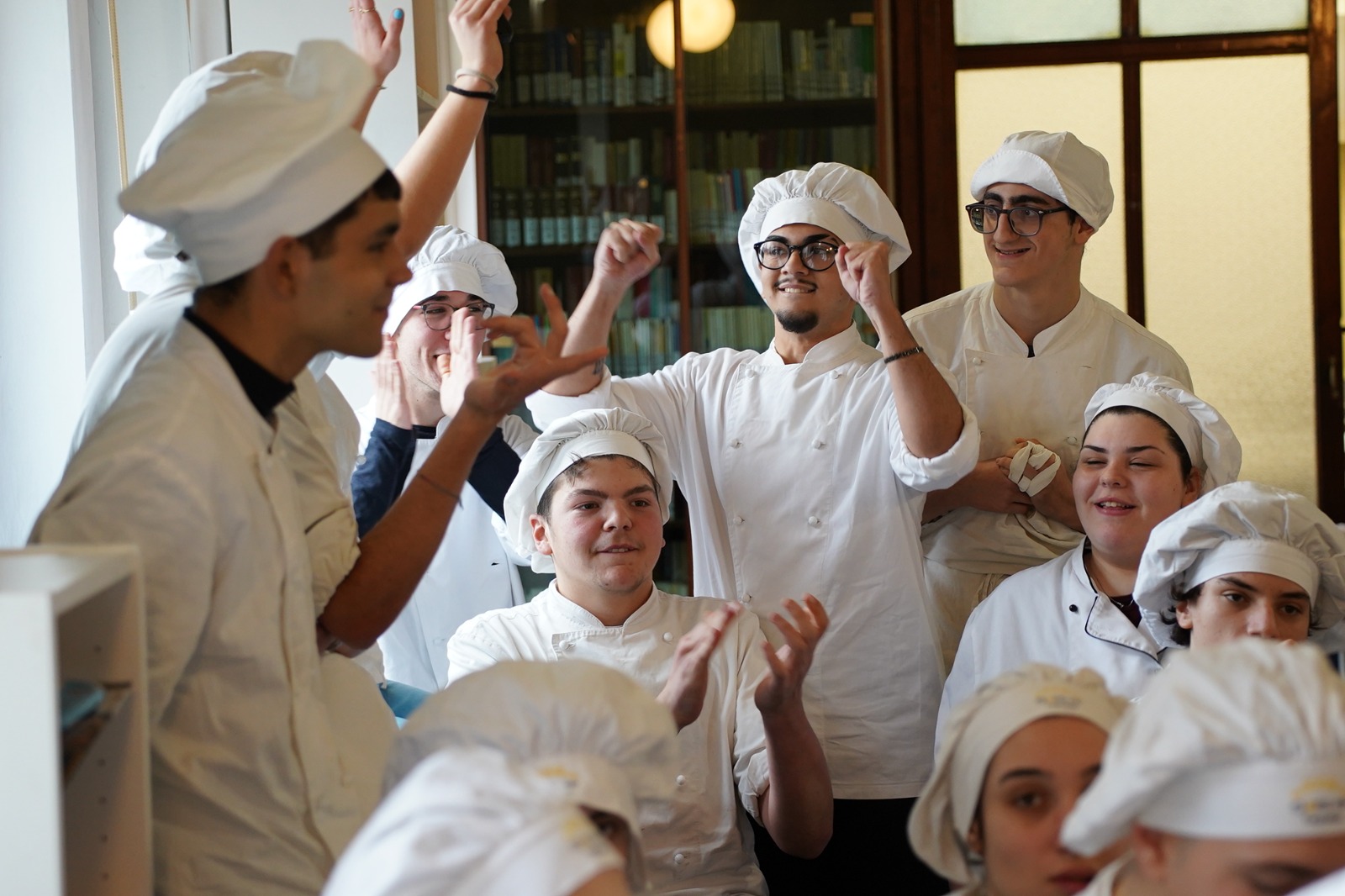 Il tour “digital” ha coinvolto gli studenti dell’IPSEOA “De Panfilis” di Roccaraso con ottimi risultati. In collegamento dalla sede F.I.C. per la lezione di “enogastronomia” lo chef Lorenzo Alessio, che ha coinvolto i/le ragazzi/e con una lezione su “Forme e formati di pasta fresca”; per l’indirizzo “Sala-Vendita” invece, in collegamento da ALMA, La Scuola Internazionale di Cucina Italiana, c’era Ciro Fontanesi coordinatore ALMA Wine Academy che ha tenuto una lezione su “I bicchieri”. Grande soddisfazione dei docenti per i punteggi straordinari ottenuti dai ragazzi: le classi 4A ind. enogastronomia e 4B ind. sala sono passate alla Finale Nazionale.