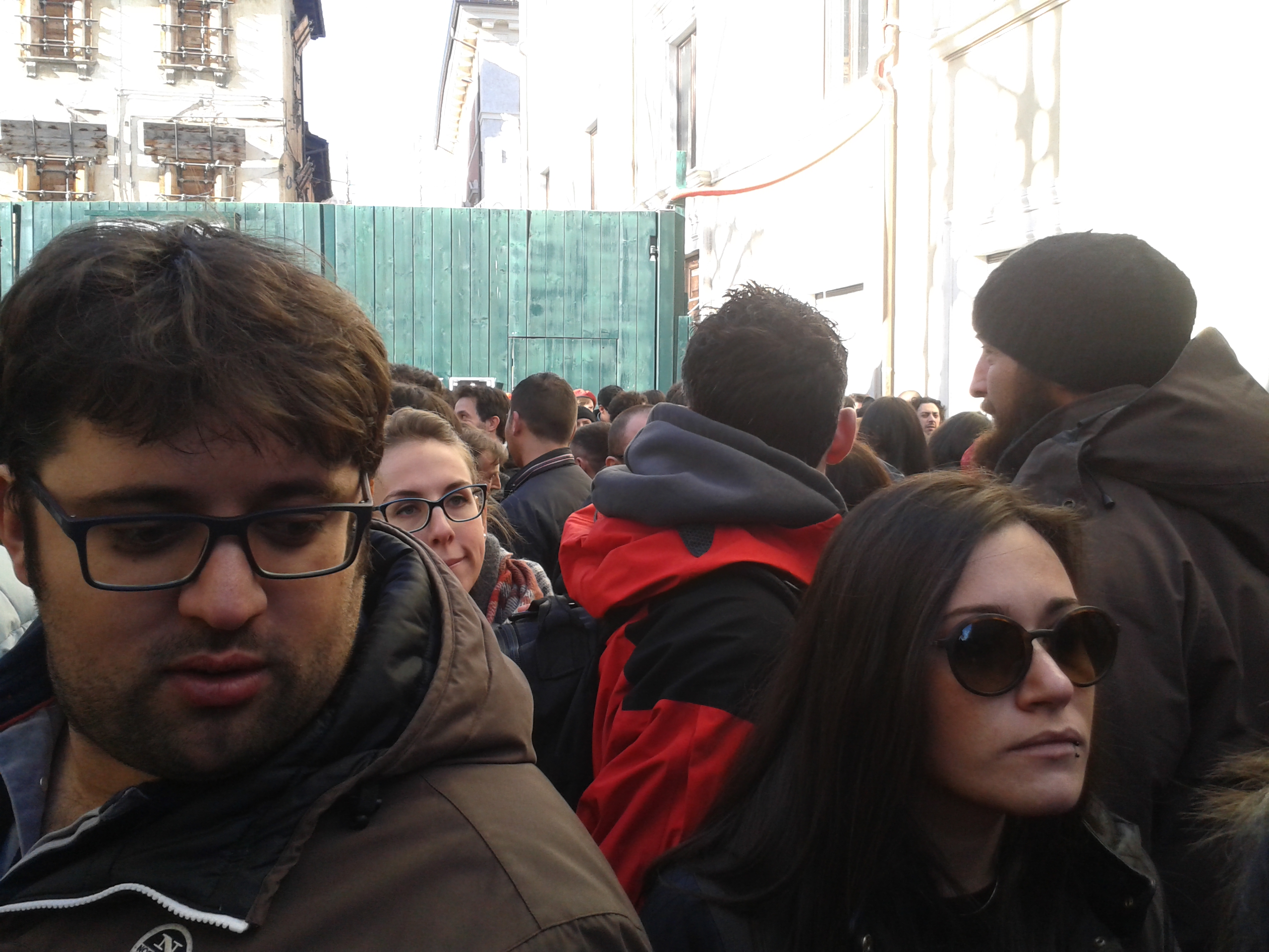 Mani che stringono un bicchiere di vino per brindare alla salute della città in questa vigile del Natale 2015, il settimo da quando la scossa del 6 aprile 2009 ha sconvolto L’Aquila distruggendo il suo centro storico e tanti paesi del comprensorio.