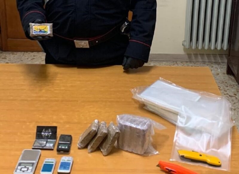 Arrestato in flagranza di reato dai carabinieri della Stazione di Archi per detenzione di sostanza stupefacente ai fini di spaccio un 32enne, E.B, residente a Roccascalegna.