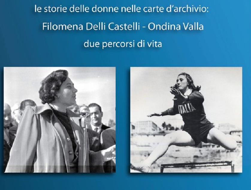 In occasione della Domenica di Carta 2021 organizzata dal Ministero della Cultura, l’Archivio di Stato di Pescara, in collaborazione con la Soprintendenza archivistica e bibliografica dell’Abruzzo e del Molise, presentano la mostra-documentaria dal titolo “Le storie delle donne nelle carte d’archivio: Filomena Delli Castelli – Ondina Valla, due percorsi di vita”.