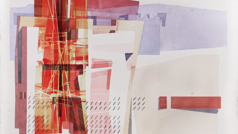 Si tratta di sei acquerelli che rimandano ad un’idea di città, un paesaggio urbano contemporaneo in parte reale, in parte in divenire, con una serie di striature come flussi di energia pura. Il riferimento non può che essere alla Nuova Pescara, il grande progetto di fusione tra i Comuni di Pescara, Montesilvano e Spoltore, e per il quale Sonsini, in qualità di architetto, ha redatto un dettagliato studio commissionato dall’associazione “Nuova Pescara”. Ciò che traspare è anche il concetto del cambiamento, tipico delle città moderne, soggette a trasformazioni imposte da una serie di fattori come quello della migrazione, dello smart working o della transizione ecologica: