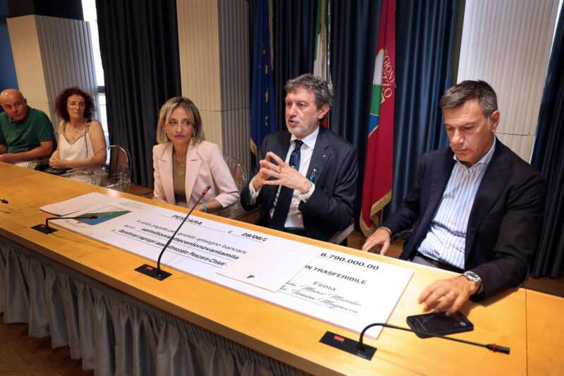 Il presidente della Regione Abruzzo Marco Marsilio e l’assessore regionale alle Attività produttive, Tiziana Magnacca, hanno consegnato i primi assegni di liquidazione agli aventi diritto. Il totale degli indennizzi ammonta a 14 milioni di euro. Stamani è stata versata una prima tranche che ammonta a 6milioni 760mila euro.
