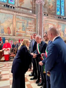 Voglio innanzitutto porgere un saluto particolare al Presidente del Consiglio, Giorgia Meloni, al Ministro Alessandro Giuli, al Ministro Generale dell’Ordine dei Frati Minori Conventuali fra Carlos Alberto Trovarelli. Al Custode del Sacro Convento di San Francesco, fra Marco Moroni, e a tutte le Autorità religiose, politiche, militari e civili qui presenti.