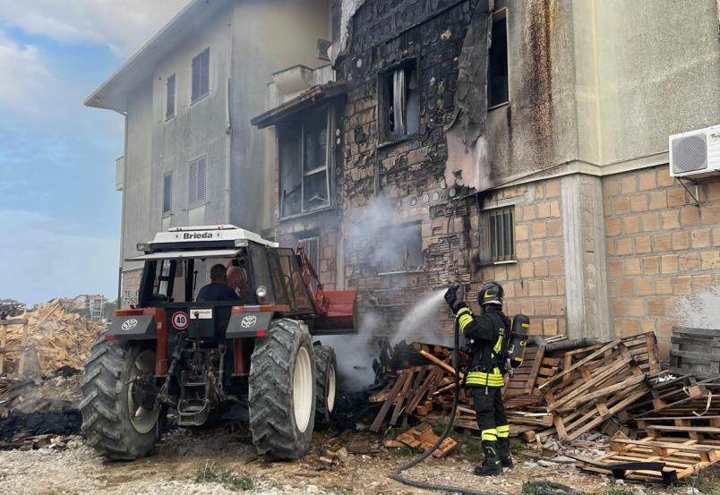 A Santa Margherita di Atri ieri pomeriggio un rogo di bancali si propaga ad uno stabile: intervengono i vigili del fuoco e i soccorsi per due inquiline intossicate dal fumo