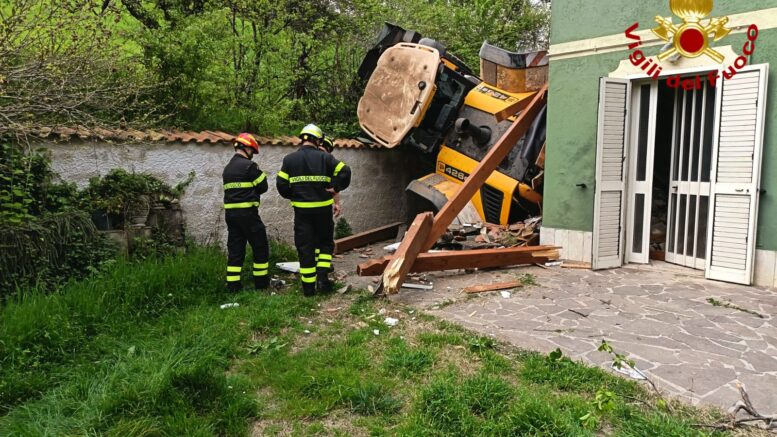La squadra del distaccamento di Roseto all’arrivo sul posto ha constatato che la pala meccanica era rotolata lungo un pendio a bordo strada finendo la sua corsa contro un’abitazione e una tettoia in legno adiacente alla stessa.