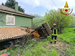 Il conducente del mezzo pesante fortunatamente è riuscito a saltare dal mezzo prima che si rovesciasse sul pendio, riportando qualche lieve graffio. Nell’abitazione si trovava un signore che, a parte il forte spavento, non ha riportato ferite o traumi. L’autista del mezzo d’opera è stato affidato al personale del 118 presente sul posto per i necessari accertamenti. Il funzionario dei vigili del fuoco si è recato sul posto per verificare la stabilità dell’abitazione.